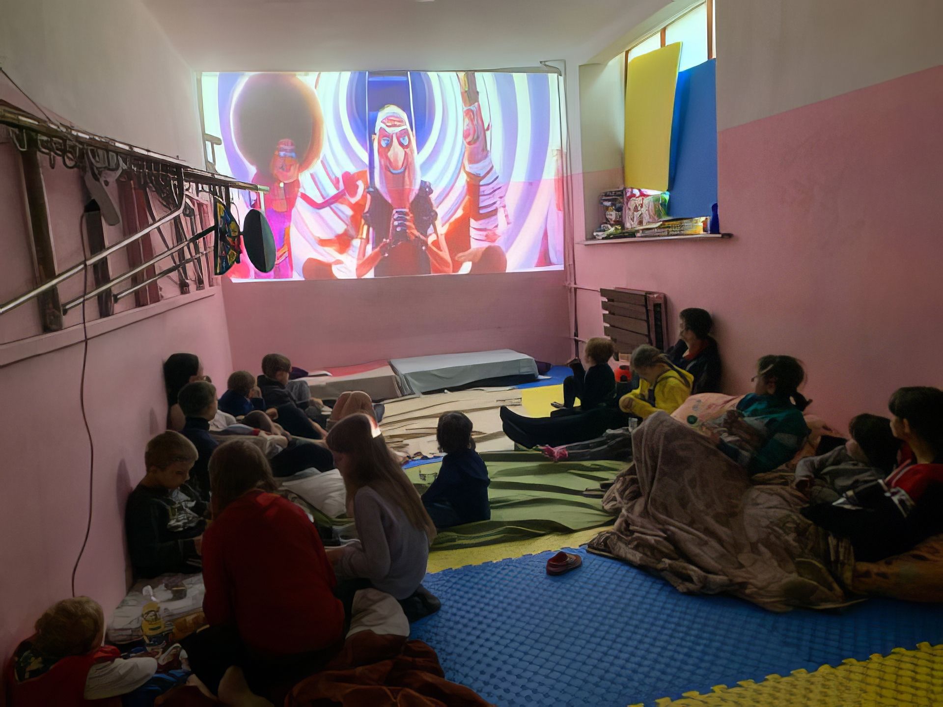 Flüchtlingszentrum Lviv Polytechnic. Dank der installierten Generatoren können sich die Kinder wärmen und Momente der Entspannung erleben.