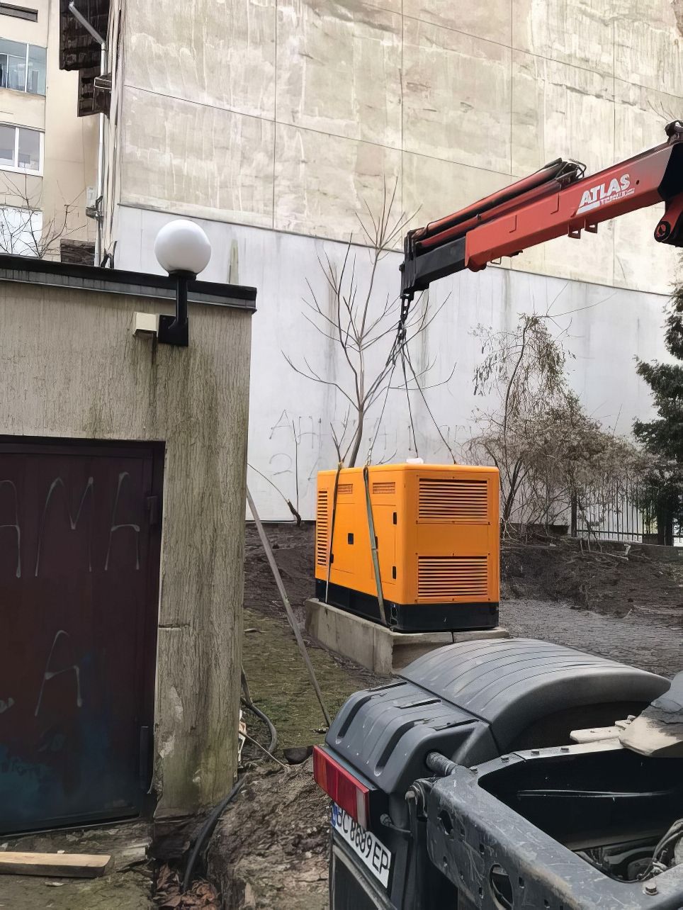 Installation eines stationären Generators in der Entbindungsklinik.