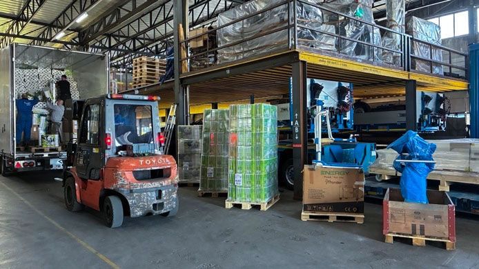 Viele Sachspenden sowie von uns eingekaufte dringend benötigte Hilfsgüter wurden vom Logistikzentrum der Firma Heussi Transport in Bilten in die Ukraine gebracht.