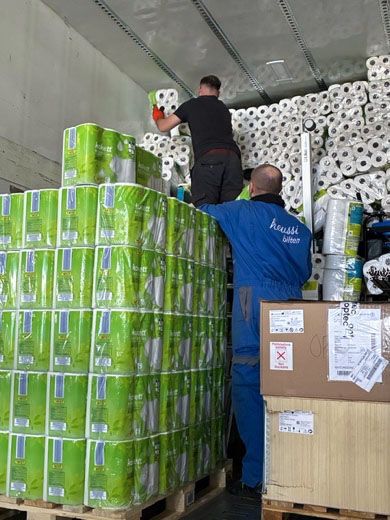 Günstig eingekauftes Toilettenpapier aus Überproduktion – Mangelware in der Ukraine.
